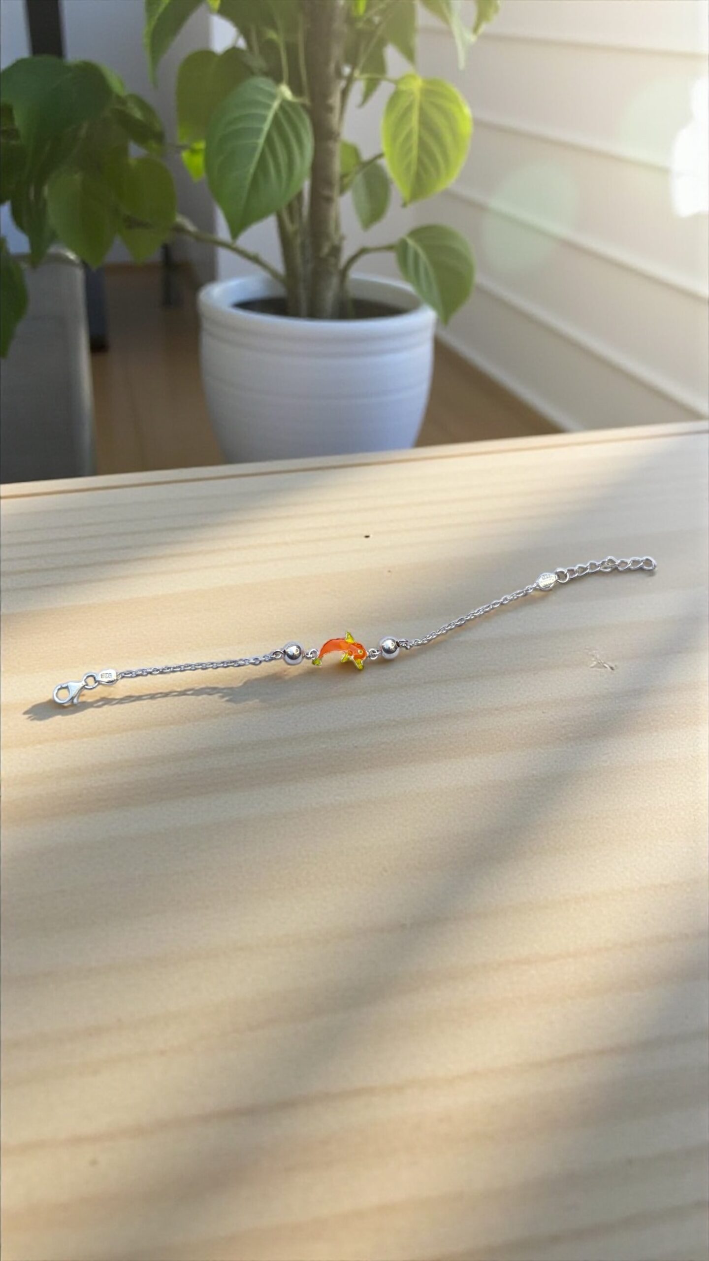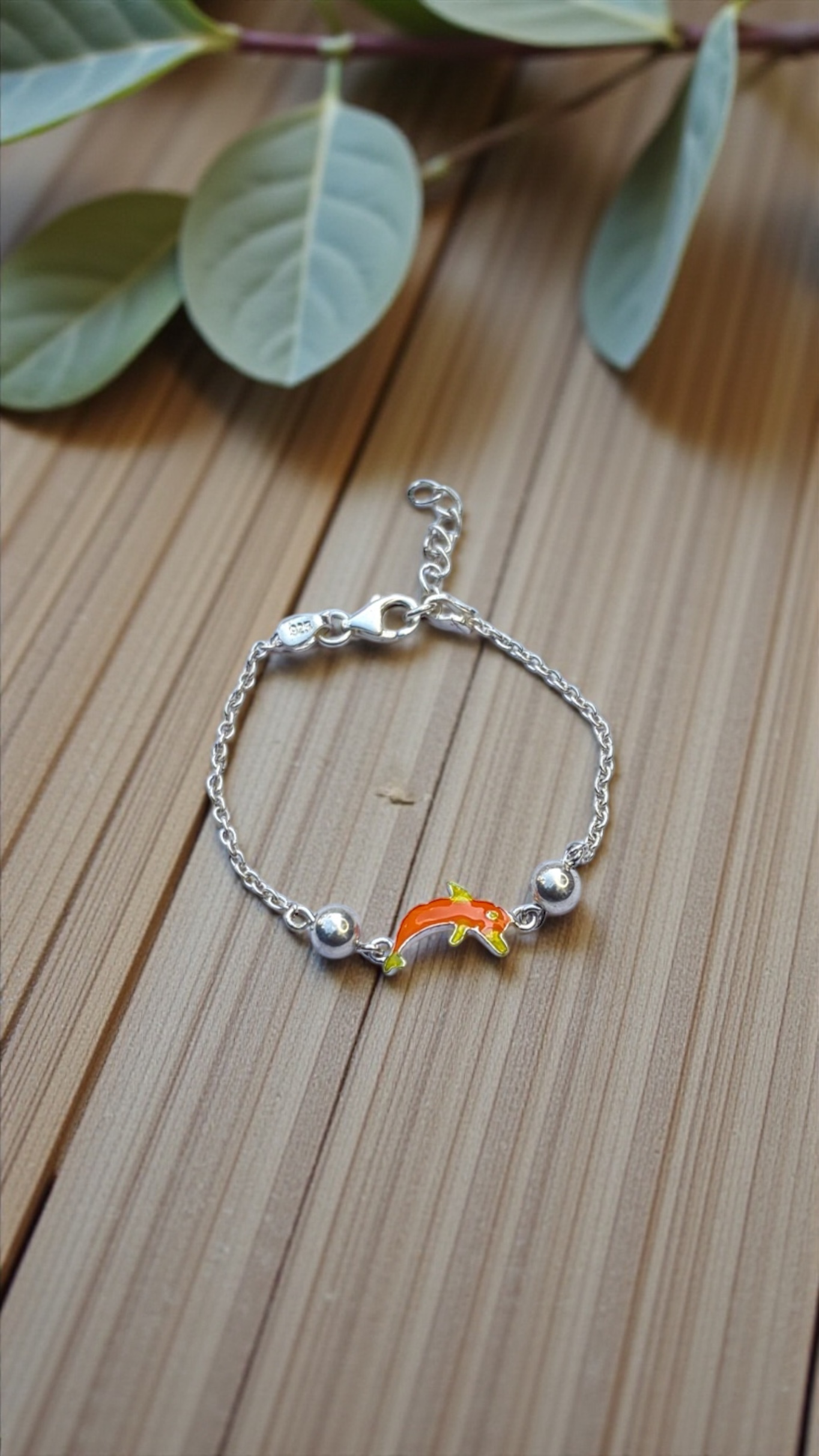 925 Silver Orange Fish Kids Bracelet, Adjustable | Gifts for Boys, Kids and Girls